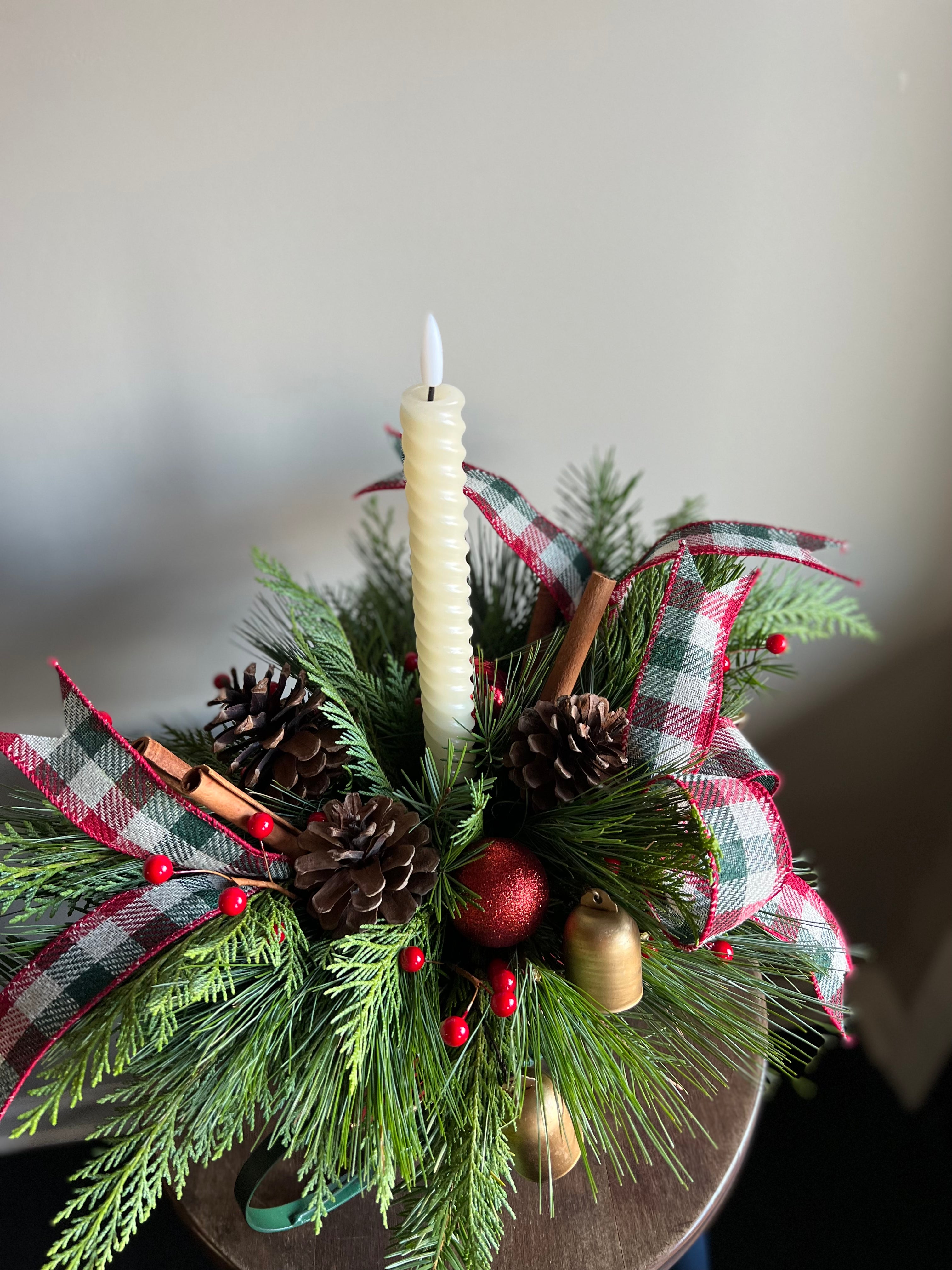 Join us to celebrate the season and create your own beautiful evergreen candle centerpiece.