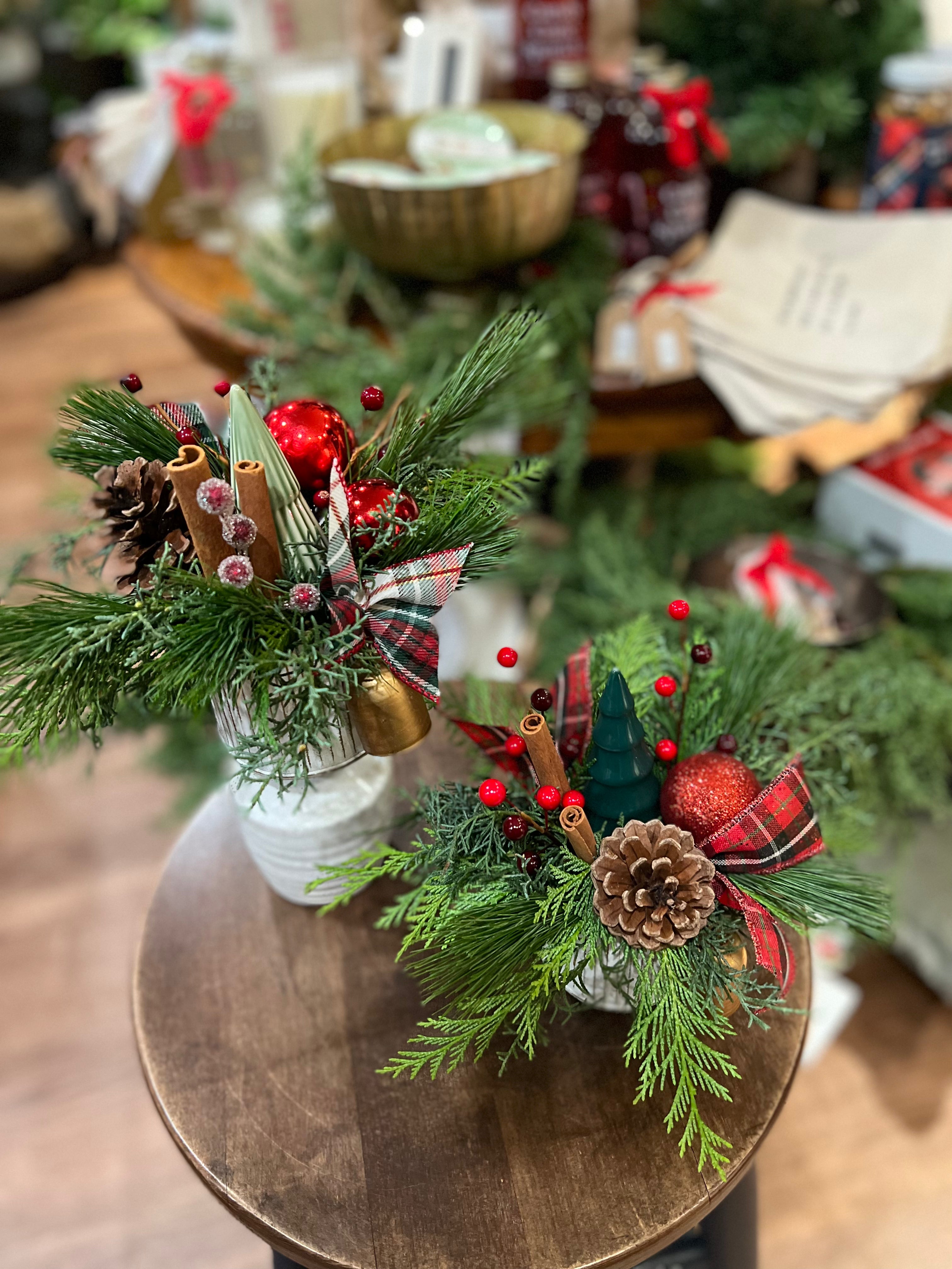Get ready to spread holiday cheer with these precious little trees! Dressed to impress in their festive finest, they're packed with lush evergreens, treasured keepsake trees, and all the seasonal goodies—think jingling bells, rustic pinecones, ruby-red berries, and warm cinnamon sticks. The perfect pint-sized way to bring Christmas magic to every corner of your home!